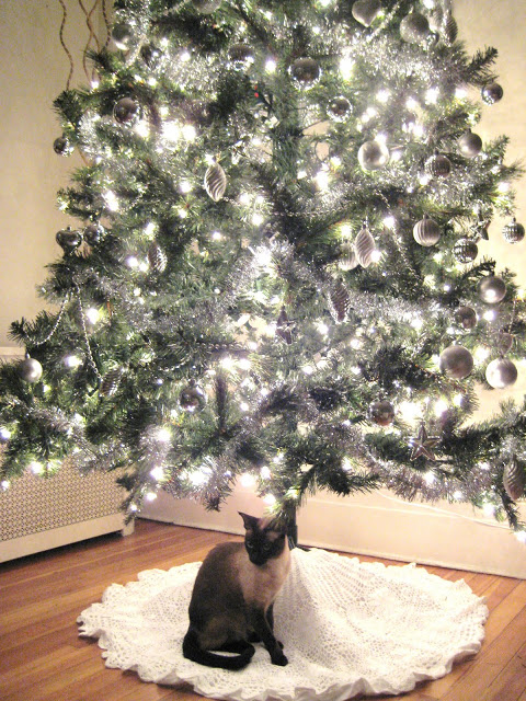 Our tree is all silver and white this year. And it’s huge. This is “his” favorite holiday of the year, so we got a giant tree now. What’s next…