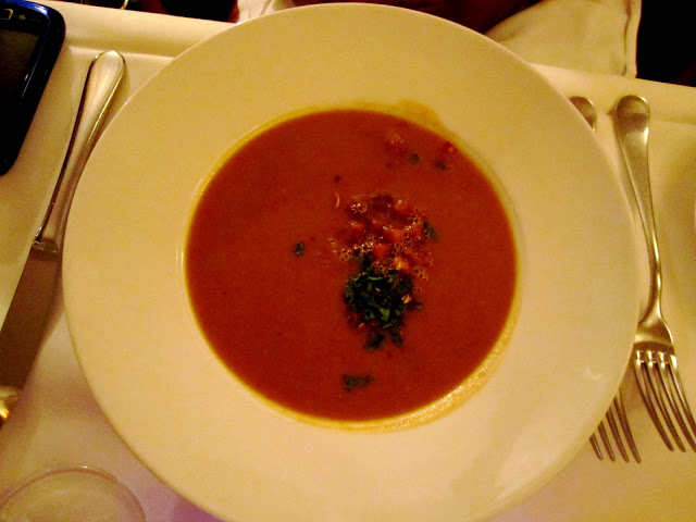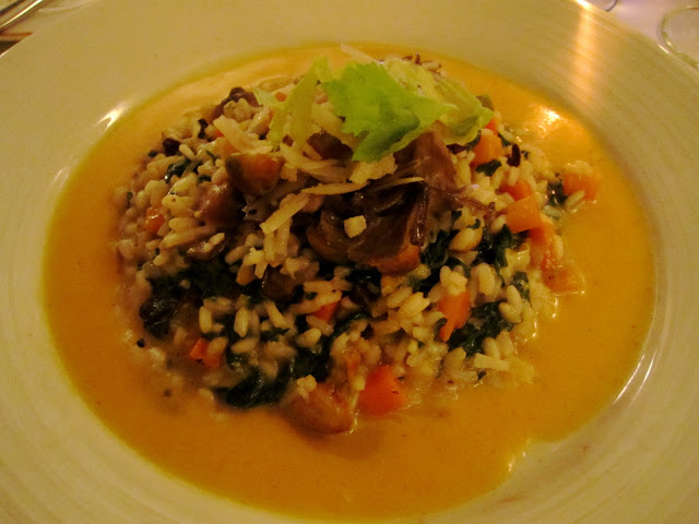 Keli had the Pumpkin Apple Soup with sweet cinnamon croutons and cotton candy that was melted in it when they brought it to the table. Gnarly.
