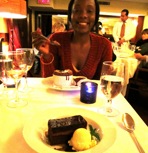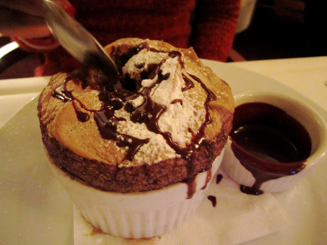 …very chocolaty Chocolate Chip Souffle with Chocolate sauce. Now try to say that fast 3 times in a row. Both amazing, by the way.