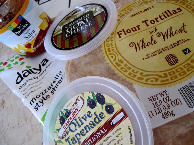 I’m the queen of quick, easy recipes. I’m not the one to spend hours in the kitchen, I did enough of that during my culinary training years. Now I’m all about getting in and out the kitchen in 30 minutes. I came up with this pizza thing one afternoon when I was rushing to get ready for work. Above photo shows you all the ingredients you need. As you can see, Trader Joe’s is my favorite store.