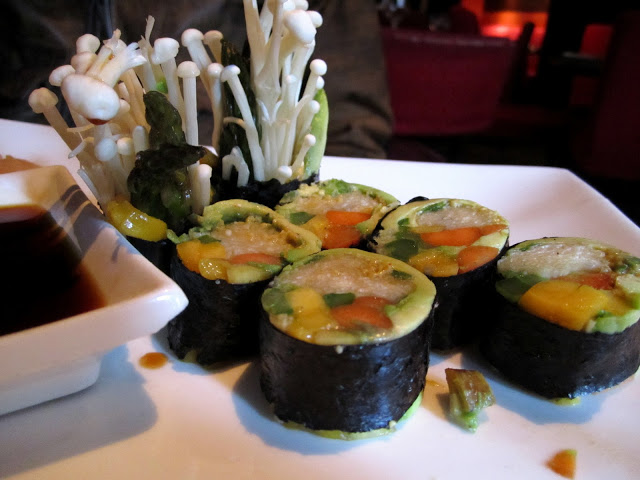 Niwa Maki of Avocado, Enoki Mushrooms, Pickled Heirloom Baby Carrots, asparagus, mango, scallions, spicy aioli. Most delicious maki rolls I’ve ever had.