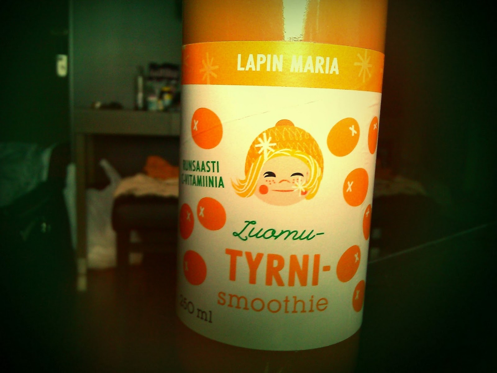 Breakfast smoothie (sea buckthorn) from my mom’s refrigerator.