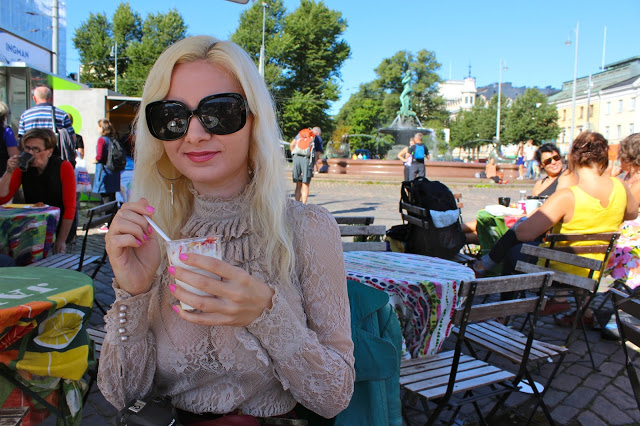 One beautiful, warm, sunny morning Saara and I met in Market Square for breakfast. I’ve been wanting to do it for years, but I tend to travel to Finland during the cold season so haven’t done it in years. This is also the best place to get unique souvenirs and handicrafts, fresh fruits, vegetables, mushrooms, berries and fish as well as street food.