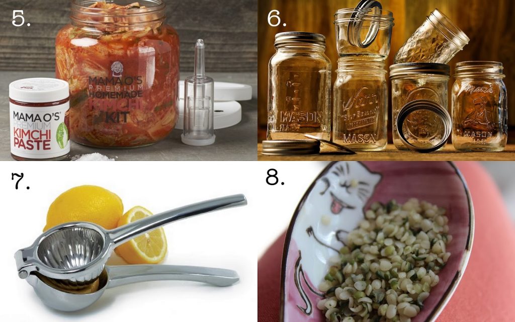I replaced our regular drinking glasses with Mason Jars I bought from the dollar store for couple of bucks. These are great for storing just about anything. When I make double batches of smoothies I keep next day’s portion stored in it and it’s easy to take with me to work. I also keep most my superfoods stored in them. Easy to clean, portable and toxin-free. Oh, and super cute.