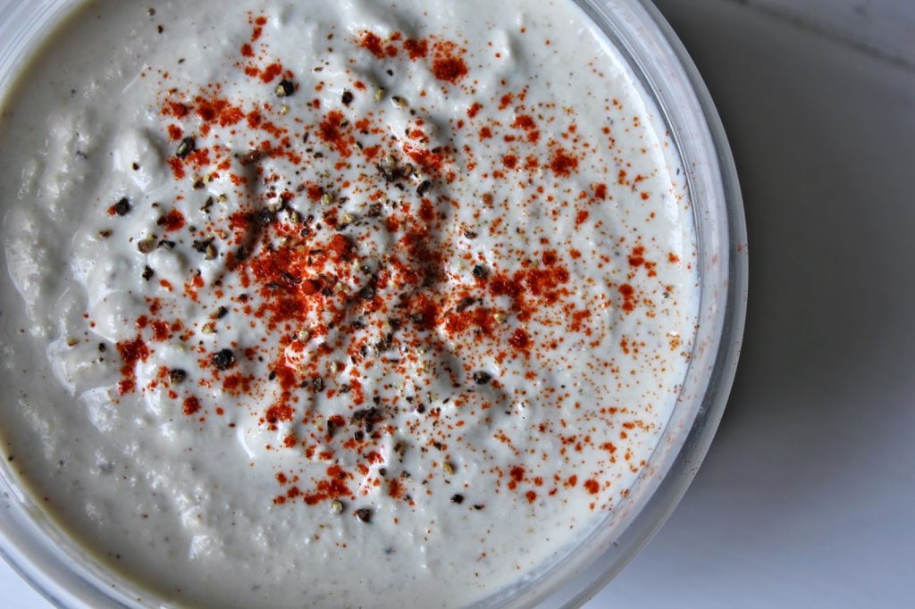 Add all ingredients in high speed blender, add water slowly until desired consistency is achieved. Some like it thicker, some more runny. Besides salad dressing, you can use it for baked potato filling, tacos, burgers and sandwiches or for dip. Possibilities are endless.