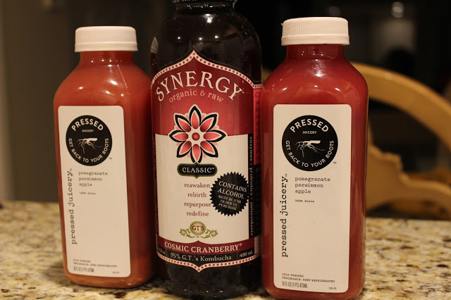 For Thanksgiving I wanted to create a festive cocktail that had a twist of healthy things in it, like fresh squeezed juices and some bubbles from kombucha. Pressed Juicery just happened to have $5 sale on their juices so after a nightshift I walked to one of their stores and got a green juice (perfect light breakfast) + couple of pomegranate-persimmon juices for the cocktail. Here’s the recipe: