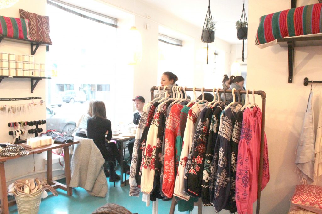 At the back of the cafe (where we sat) is also Nest Factory that sellsĀ items from around the globe, creating a unique collection of goods that are ethically produced and sourced, valuing quality over quantity. So many cute things for the home and to wear, like these adorable hand embroidered Ukrainian blouses in the picture below.
